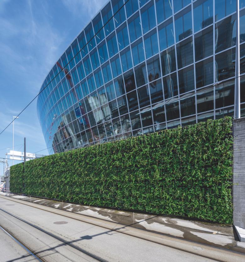 Die 1. Etappe der Fassadenbegrünung des Circle am Flughafen Zürich auf 430 Quadratmetern – aktuell eines der grössten vertikalen Begrünungsprojekten der Schweiz – ist abgeschlossen. Gemeinsam mit dem Flughafen Zürich und Ramseier & Associates LTD, Projektverfasser und Planer der «Greenwall», erarbeitete Hydroplant AG ein Detailkonzept zur immergrünen Ankunft am Flughafen.