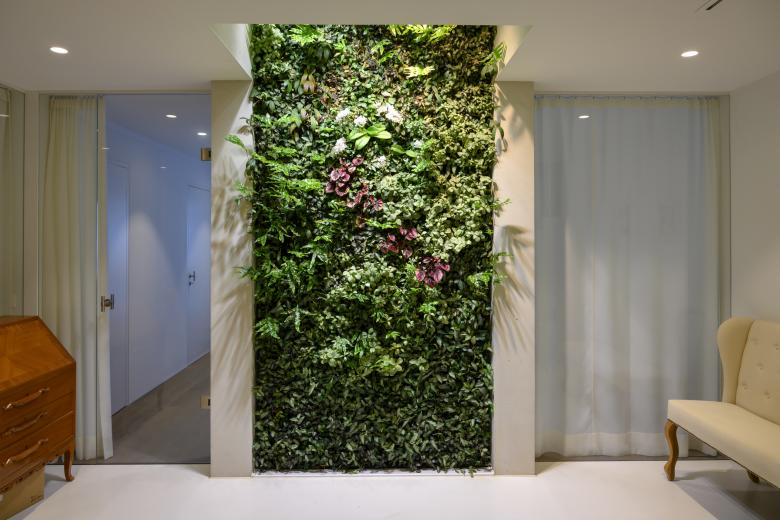 VERTICALIS BIG ist ein riesiges, lebendiges Wandbild. Unzählige vertikal angebrachte Pflanzen beleben den Wohnraum und füllen ihn mit Frische. Doch nicht nur das – sie arbeiten auch täglich daran, das Wohlbefinden der Bewohner zu verbessern. Denn sie dämpfen den Schall, filtern und befeuchten die Luft und tragen mit ihrem Anblick zur Ausgeglichenheit bei.