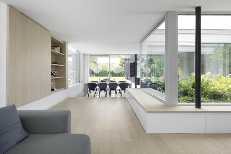 With a purist design approach and modest materials, Bedaux de Brouwer and i29 designed a villa that has a luxurious quality, without being pretentious. The biggest quality of this house is the harmonious intergration of interior and exterior to the smallest details. Large wooden surfaces are applied throughout the house to connect the different areas. Cabinets, wardrobes, walls, sliding doors, beds are made of the same wood and finish for unity and connection.