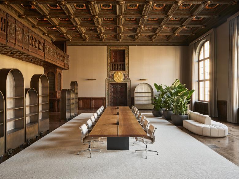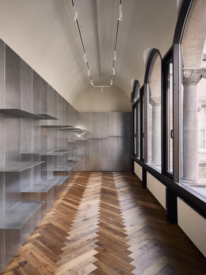 Im Mittelpunkt stand die Transformation und Wiederaufbereitung des denkmalgeschützten Gobelinsaals in einen multifunktionalen Arbeits- und Veranstaltungsraum. Ergänzt wurde dieser durch eine offene Küche, repräsentative Archiv- und Bibliotheksräume sowie ein zusätzliches Ausstellungsdepot – den „Tresor“. Historische Details, Lichtführung und Möblierung wurden sorgfältig aufeinander abgestimmt. So entstand ein Ort, der gleichermaßen Kreativität, Kommunikation und Repräsentation unterstützt.