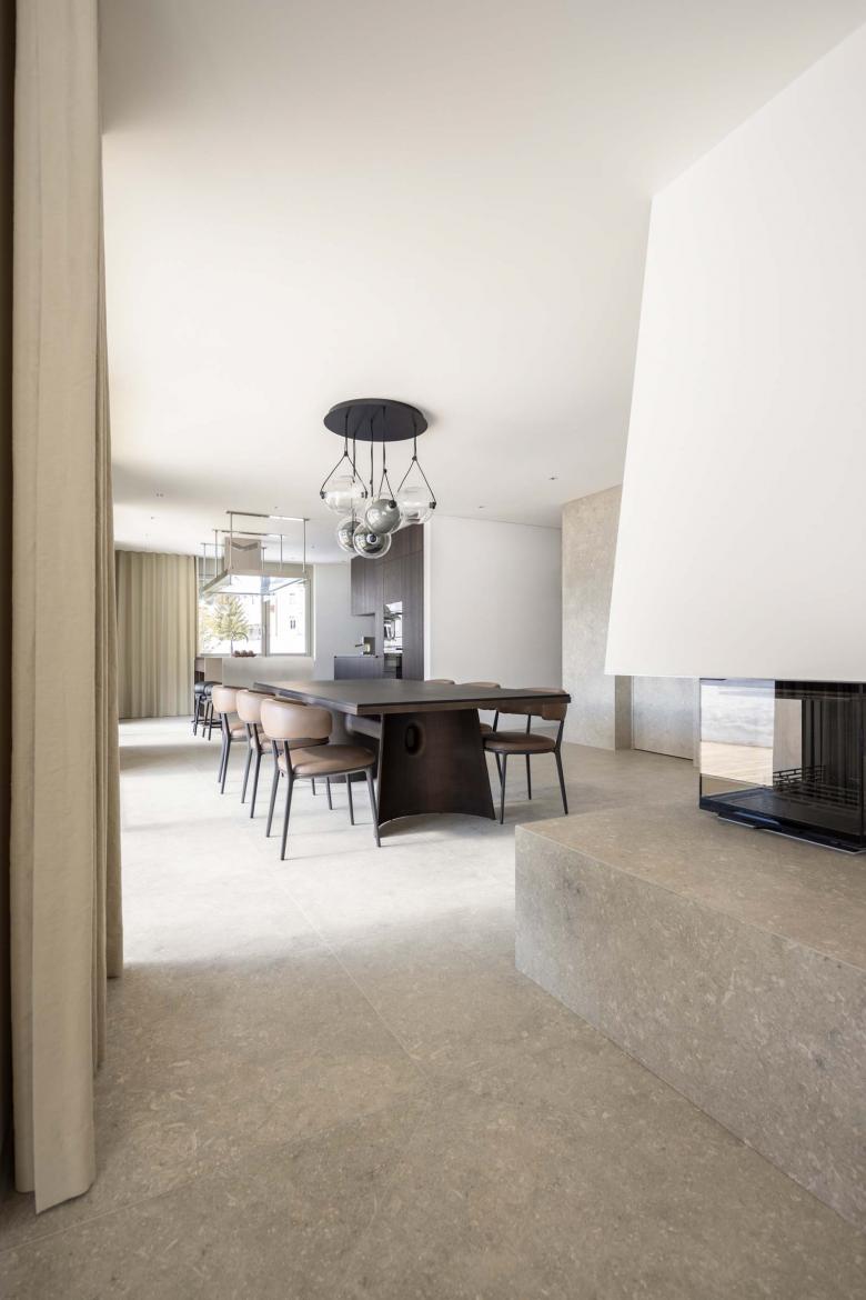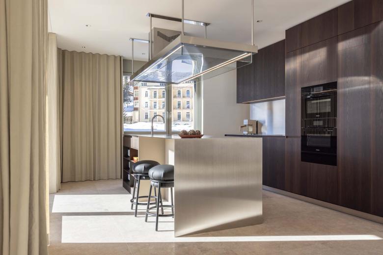 Das Loft liegt in den Schweizer Alpen in Graubünden und wird als Hauptwohnsitz belebt. Auftrag war es, aufgrund der Affinität der Bauherrenschaft zu Italien, ein urbanes Stadtloft mit Mailänder Charme in den Alpen zu kreieren, das sich gleichzeitig in die alpine Umgebung einfügt und mit ausreichend Platz zum Kochen und einem großzügigen Wohnbereich eine warme Wohlfühlatmosphäre ausstrahlt.