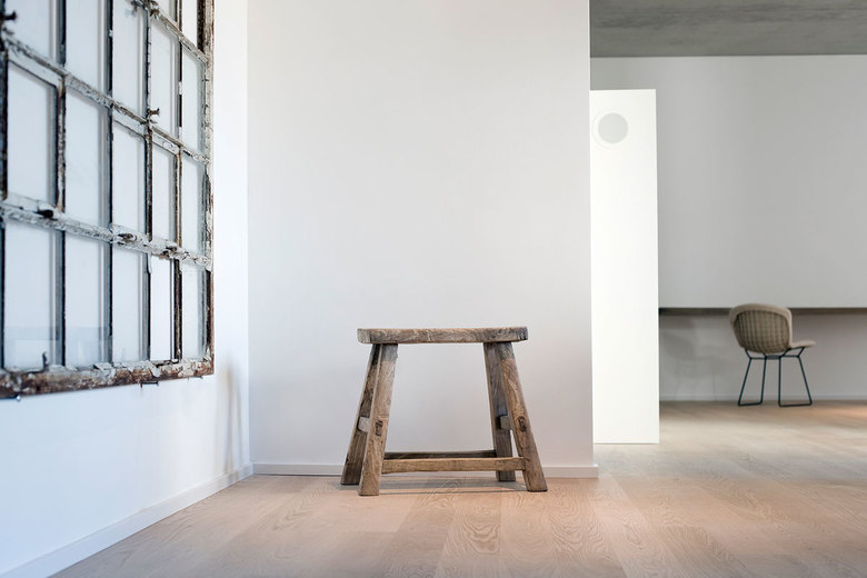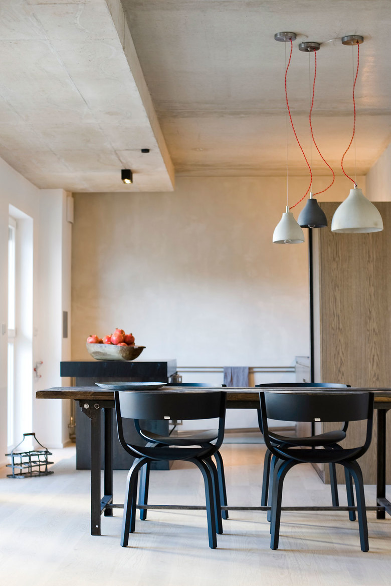 An die Ansprüche des Kunden angepasst, entsteht eine großzügige Raumstruktur mit individualisierten Bereichen. Die Möblierung ist auf das Wesentliche reduziert. Gezielt ausgewählte Vintage-Elemente schaffen in Kombination mit schlichten, geradlinigen Objekten einen wohnlichen Charakter. Durch den bewussten Einsatz hochwertiger Materialien entsteht eine spannungsvolle Atmosphäre. Individuelle Schranklösungen bieten viel Stauraum. Ohne sich aufzudrängen, fügen sie sich in das geradlinige BIld ein und überraschen mit besonderen Details..