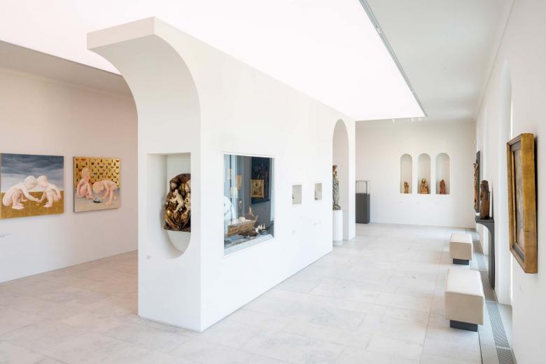 Die Sammlung besteht aus elf Räumen: zwei im Erdgeschoss und neun im ersten Stock. Da jeder Raum mehr Betrachtungsfläche erforderte, wurden in der Mitte der Räume freistehende Wände aufgestellt, um intuitive Wege zu schaffen, auf denen sich die Besucher frei durch den Raum bewegen können. Manchmal wurden die Wände so skaliert, dass sie selbst zu Räumen wurden und eine andere Atmosphäre schufen, manchmal wurden sie abgerundet, um den Besucher zu provozieren, ihnen zu folgen. Die charakteristischen Bögen des Gebäudes wurden als Formindex verwendet, um die Wände mit Durchgängen oder Nischen zu öffnen und um die Vitrinen und Podeste zu gestalten.
