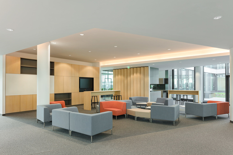 Für das neue Gebäude am Standort Stockdorf, das vom Architekturbüro Hoffmann Amtsberg (abha) geplant und ausgeführt wurde, wurden durch iam Bereiche geschaffen, die den unterschiedlichen Bedürfnissen der Mitarbeiter nach Konzentration, Kommunikation und Rückzug gerecht werden und die Zusammenarbeit im neuen Firmenhauptsitz bei München beleben. So konnte im Change Prozess, dem sich auch die Führungskräfte unterstellt haben, den Ängsten vor flexiblen Arbeitskonzepten wirksam begegnet werden.