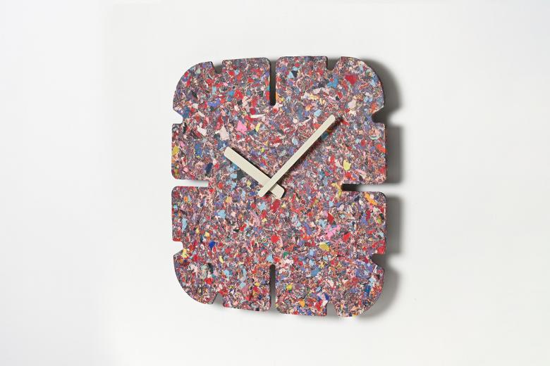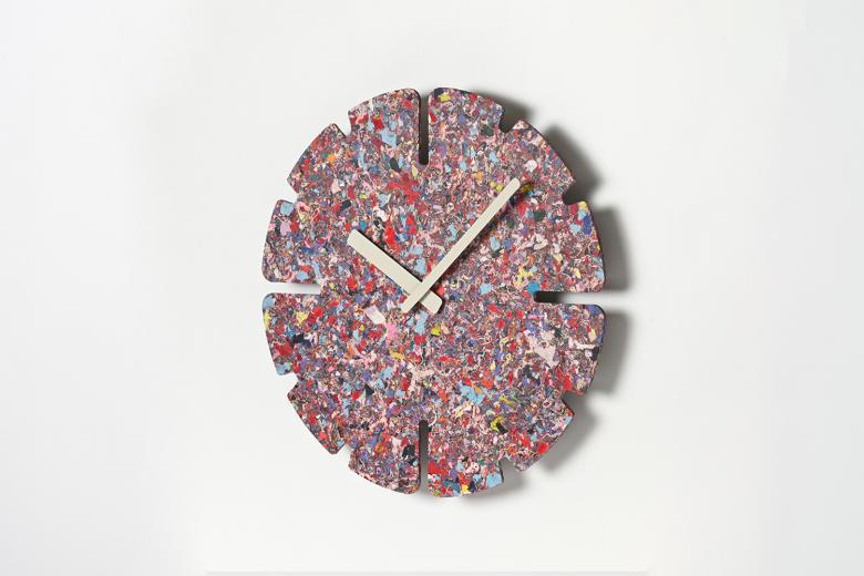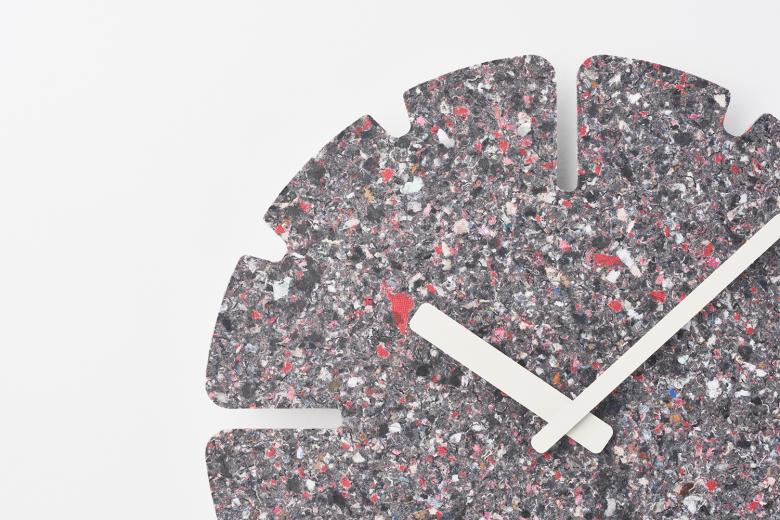 The “PANECO CLOCK” uses a sustainable, recycled fiber board made from waste clothing as part of closed-loop recycling. This wall clock is reusable and recyclable. Boards made from waste clothing show subtle differences in their color and pattern, which means no two are the same. Clocks that are no longer used are also collected and recycled as materials to be reborn as new clocks.