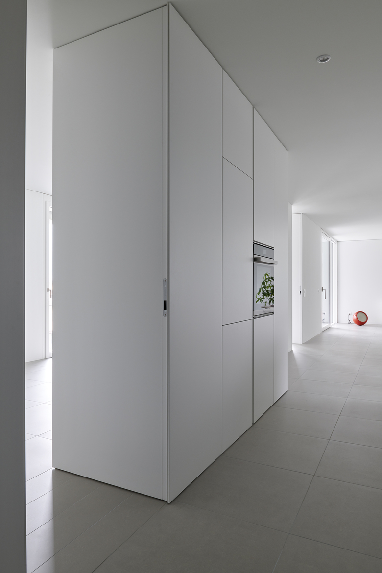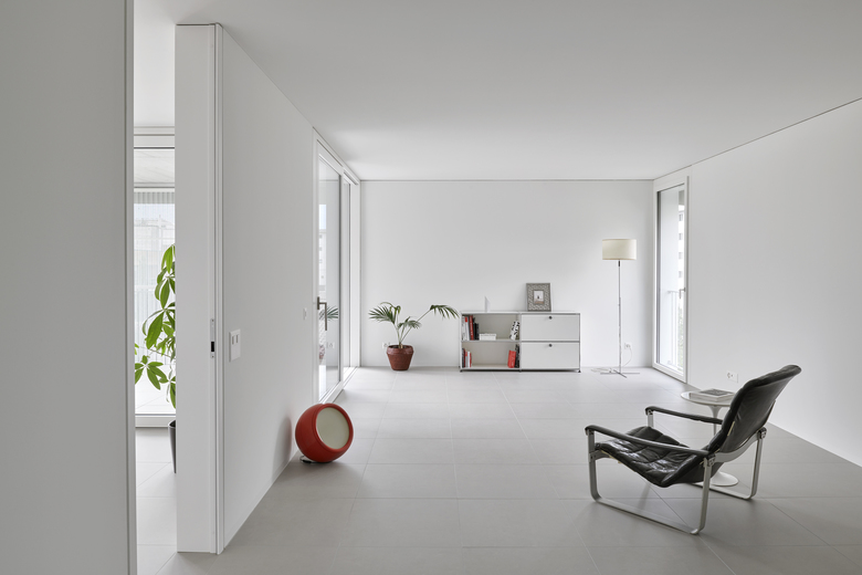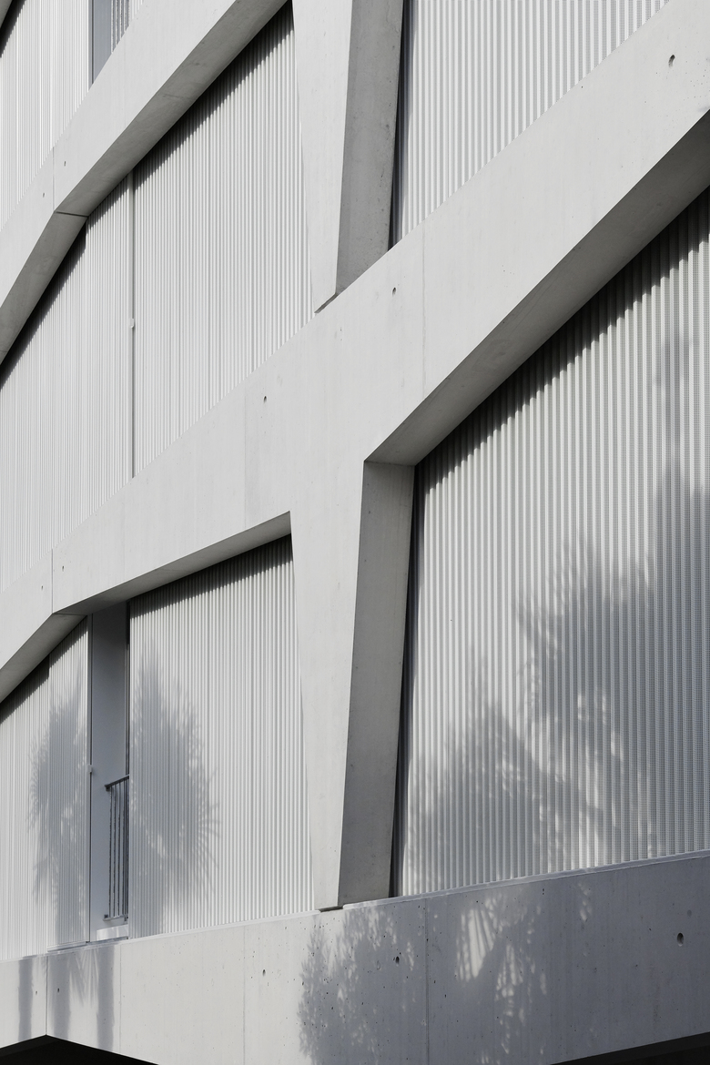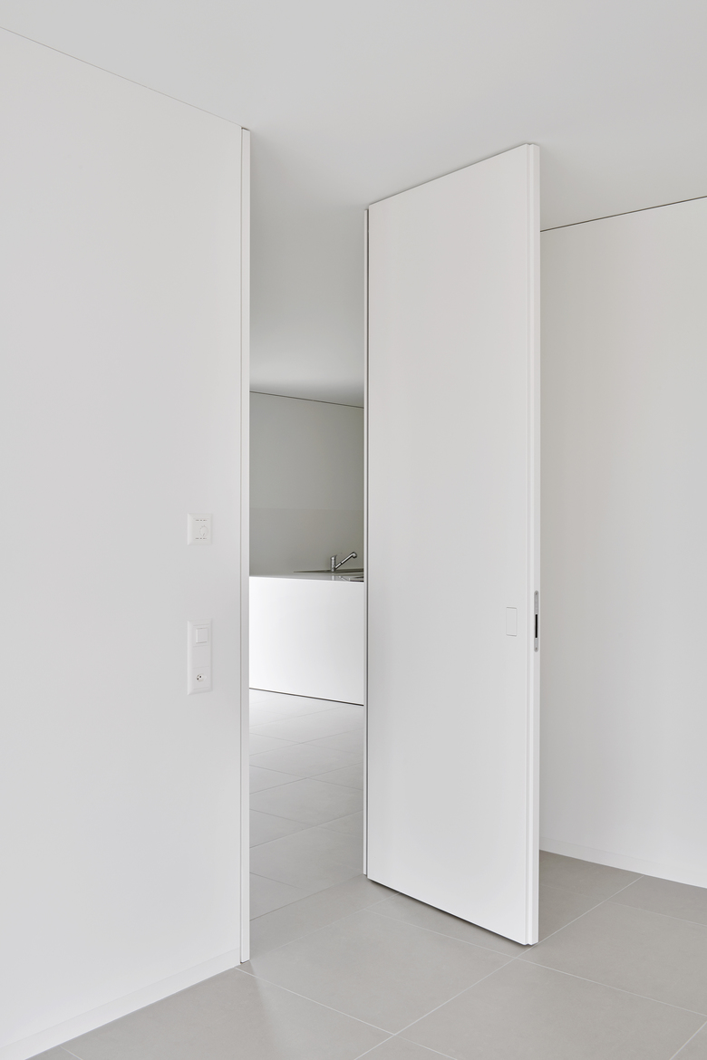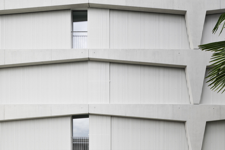 Boundary distances and building laws determine the volume of the building. Extending over six storeys, the palazzo houses one apartment per floor and is a hybrid construction. On the one hand, it shows its dignity and urban integrity by turning the load-bearing structure outwards, thus determining the façade, while on the other hand, the prefabricated façade elements made of perforated sheet metal do not negate the semi-industrial and handcrafted character of the place. The architecture of the Palazzo Pioda responds to the dynamics of its setting by recalling the integrity of a modernist expression and thus creates a dialogue with the old «Tendenza» masters from the Ticino region.