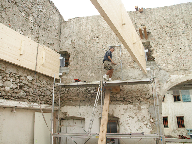 Upstairs, the framework has been renovated according to an old-fashioned method, always respecting the existing building.