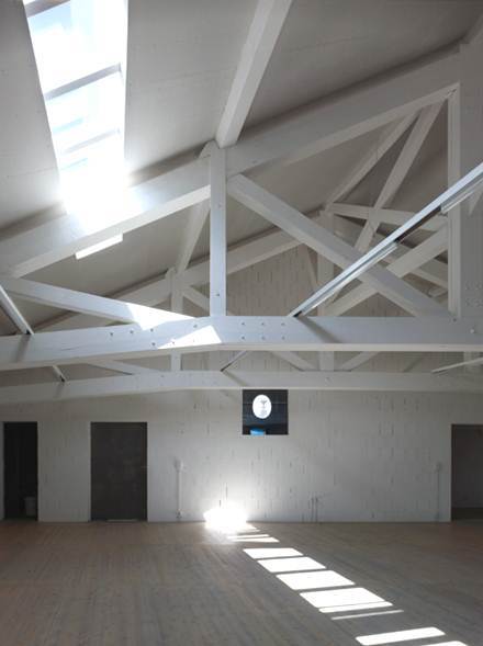 The conversion of this barn into an artist's studio proposes the insertion of a new wooden slab separating the ground floor from the creative space on the floor. With only 90 kg / m2, the new girder floor crosses the entire space over a length of 15 m. Its structure is made up of four thin main beams with a height of 120 cm, a secondary system and covered with wooden plates. The latter participate in the rigidity of the whole thanks to its solidarity system.