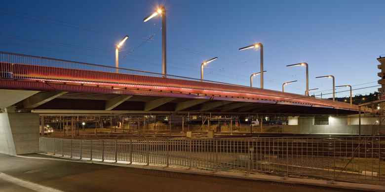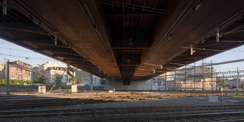 Replacing the road bridge of 1938, the new Langensandbrücke launches a link between the city center and the periphery. It allows vehicles, cycles and pedestrian to cross the wide range of railways connecting to the main station. Its form results from the synthesis of requirements and constraints of the project. The restricted height gauges and the limited area allocated to the construction site complexify the required uses for safe personal and public transportation. The chosen shape intelligibly expresses both these structural and functional purposes.