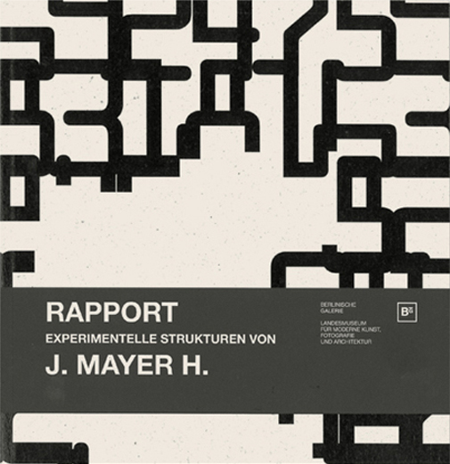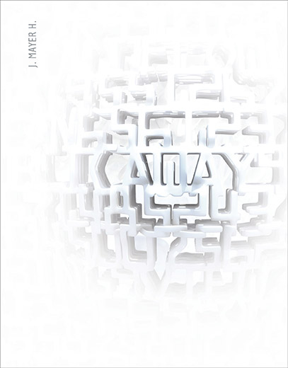 Excerpt from the press release: “For the museum’s 10-metre high exhibition space J. MAYER H. has developed a walk-in installation. Walls and floor are clad in carpeting, on which data security patterns are printed in black and grey. The work’s space-consuming concept negates the strict geometry of the entrance hall. The considerably enlarged, repeating patterns produce a flickering impression and transform the white cube into a playful scenario of interpermeating forms and structures. Supplementary three-dimensional models translate the two-dimensional patterns into concrete forms. The catalogue of the exhibition includes various illustrations, explanatory texts and a commented biography.”