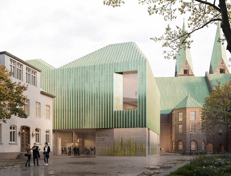 With the new building, the renowned concert hall “Die Glocke” is expanding its range of musical experience spaces and consolidating its position as a cultural nucleus in the heart of the city. The geometrically clear structure is respectfully linked to the historically significant old building via a glass joint. The new entrance foyer is also located here. In future, there will also be optimal conditions for workshops. Other listed buildings will be integrated into the new ensemble.