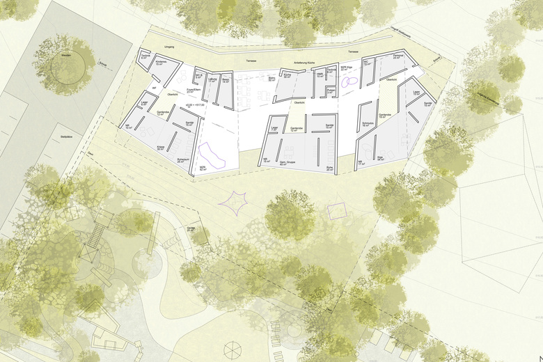 • Auffädeln der zentralen Nutzungen wie Elternforum / Mehrzweckräume und Kinderbistro entlang