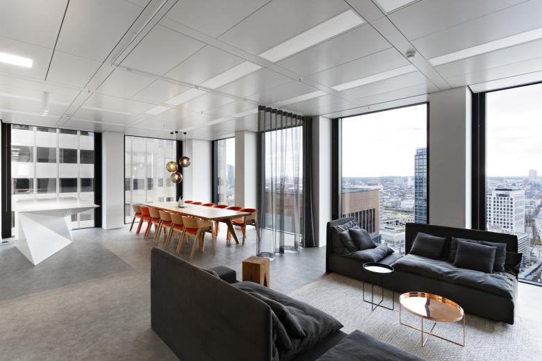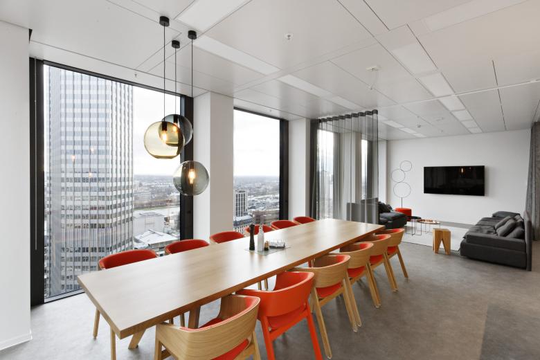 Ein Auszeitraum über den Dächern der Stadt mitten im Bankenviertel. Wir begleiteten eine renommierte amerikanische Anwaltskanzlei bei der Neuorientierung ihrer Frankfurter Büroflächen. Nun hat sie ihr neues Headquarter im 19. und 20. Obergeschoss des Taunusturms bezogen.