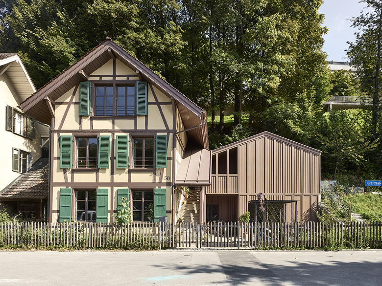 Das Fachwerkhaus an der Jurastrasse 58 wurde im Jahr 1877 erstellt. Das Gebäude ist Teil eines am Aarehang gelegenen Ensembles, das mehrheitlich durch kleinmassstäbliche, ländlich-spätklassizistische Riegbauten geprägt wird. Es handelt sich um das einzige Haus der Gebäudegruppe, dessen Riegkonstruktion noch vollständig sichtbar ist. Der Baukörper ist giebelständig zur Strasse orientiert. Als typisches, identitätsstiftendes Element erschliesst eine überdachte Laubentreppe die Obergeschosse.