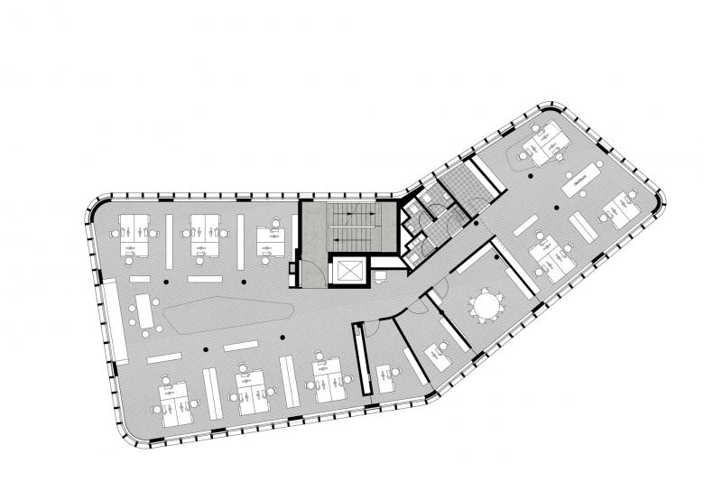 Die neue Firmenzentrale spiegelt mit ihrer Form und Materialität die Zurückhaltung gegenüber ihrer Umgebung wider. Gleichzeitig wird ein starkes architektonisches Zeichen gesetzt das individuelle Arbeitsplätze mit hoher Qualität beherbergt.