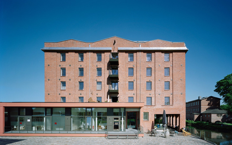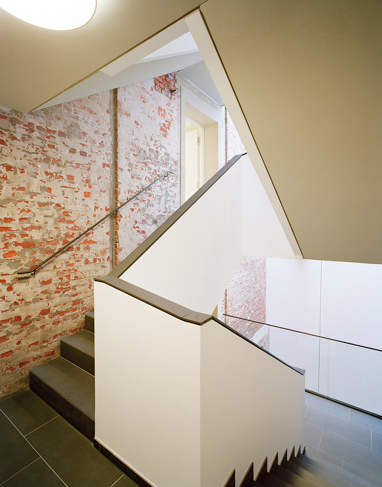 An die ehemaligen Ladeluken auf der Westseite wurden kleine Balkone aus Stahl angebaut. Auf der Osteite wurde die Backsteinmauer, die als Brandschutzwand ausgebildet war, durch Fenster und Loggien aufgebrochen.