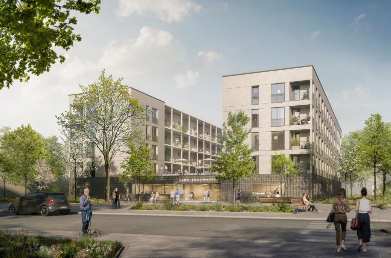 Mit dem Quartiersplatz LeNa Kroonhorst soll ein attraktiver, barrierefreier Anlaufpunkt für Menschen aller Altersgruppen aus der näheren und weitläufigeren Umgebung geschaffen werden. Der Platz hat neben seiner Funktion als Verweil- und Kommunikationsfläche die Aufgabe, das teilöffentliche Gebäude mit der Stadtteilöffentlichkeit zu verbinden, so dass das Konzept LeNa Lebendige Nachbarschaft nach außen getragen und gelebt wird.