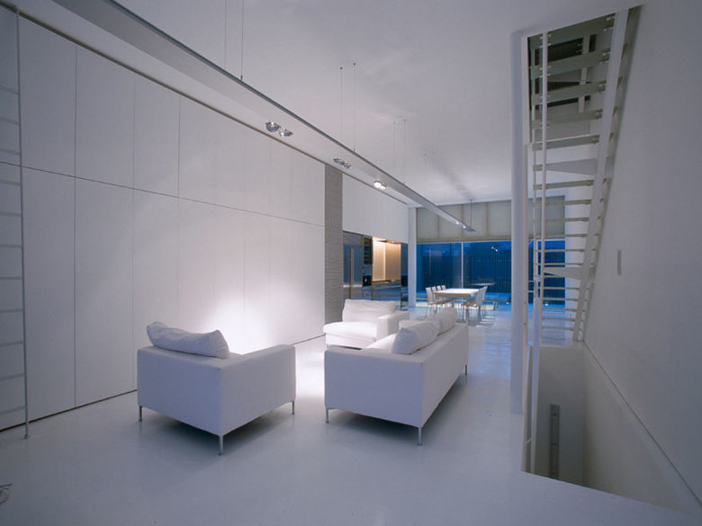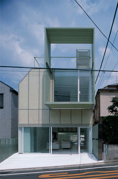 I have employed plastic for the project, the house for a mother (writer) and a son (photographer). The dwelling stands in the center of the city and various parts of ‘living’ are open to the urban condition. Mother’s room is a small antique museum and there is a constant flow of people in and out the studio. Outdoor open space on the ground floor is a tearoom without roof where the client holds the tea ceremonies for his friends. The roof terrace is his outdoor studio and also the party space in the air.