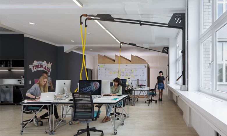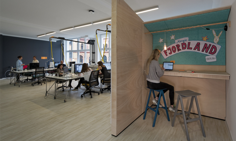 Fjord, a design and innovation agency with 15 studios around the world, recently opened its new German headquarters in Berlin. Kinzo was commissioned with the design of the entire storey of a former industrial building in Prenzlauer Berg, creating an office that provides the greatest possible creative scope for Fjord’s employees, as well as a high level of spatial flexibility. With its new design for Fjord, Kinzo has once again created a place that takes the identity and character of the client seriously. Like a modular kit, architecture can provide an organising structure for chaos, yet without setting boundaries, which was especially important in this particular case.