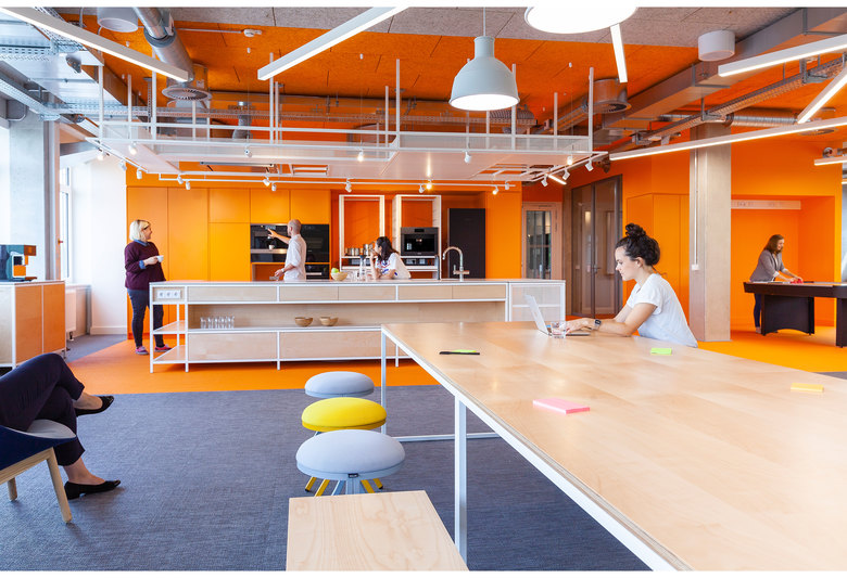 The open space concept allows for a versatile use of the premises and fosters creativity and communication between co-workers. Besides meeting, all hands and workshop areas, the test and show kitchen is at the heart of the lab. It offers sufficient room for workshops and project work as well as the testing and exhibition of new prototypes. The lab’s informal, “homely“ atmosphere encourages an exchange between co-workers while the interior design promotes casual encounters and ad hoc meetings. Simultaneously, the appealing working environment provides a source of identity and attracts new hires.