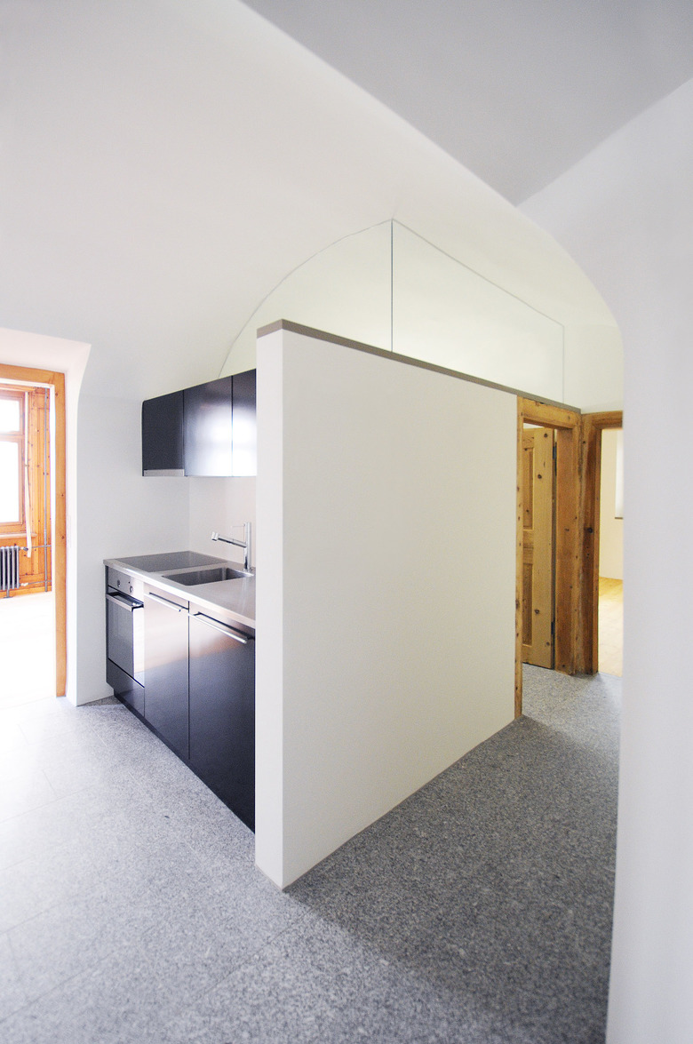 Die als Bauernhaus erbaute Chesa Pravenda beinhaltete den Stall sowie den Wohnteil unter einem Dach. Die Gebäudestruktur, die beiden Keller, der gewölbte Raum im Erdgeschoss sowie die Decke des Stalles (heute Saal) sind original erhalten. 1899 wurde das Haus renoviert und modernisiert. Aus dieser Zeit stammen die Fassade, die Dachkonstruktion, die Veranden, die Holzverkleidung der Stuben und die alten Böden. Im 20. Jahrhundert wurde das Haus in 2 Wohnungen aufgeteilt und eine Garage wurde eingebaut. Die Kirchgemeinde hat uns den Auftrag gegeben, das Haus in eine Altersresidenz mit mehreren Wohnungen umzubauen. Es entstanden 8 kleine Wohnungen für Senioren und eine Grosse im Dachgeschoss für den Abwart. Ziel war es, den Neoklassizistischen Charakter und die Architektur zu erhalten und zu unterstreichen. Die neuen Elemente wurden bewusst als moderne Akzente in der Gestalt von schwarzen Küchen und weissen Bädern mit Steinböden eingesetzt. Einen weiteren Akzent setzt das neue Treppenhaus mit Steinboden und einem Geländer aus gestrichenem MDF. Die Stuben (teils lackiert), die Dachkonstruktion, die Decke des Stalles und die alten Türen im Untergeschoss wurden gereinigt.Die gemalten Stuben und alle anderen hölzernen Elemente im Haus wurden grau gestrichen. In den Wohnungen wurden die alten Holzböden aufgefrischt und wo keine alten Böden waren, wurde ein neues Lärchenholz-Parkett verlegt. Im Untergeschoss entstanden Nebenräume und im ehemaligen Stall wurde ein Saal für die Kirchgemeinde eingebaut. Im gesamten Untergeschoss wurde ein roter Unterlagsboden gegossen und anschliessend geschliffen. Um einen Behindertengerechten Zugang zum Haus zu gewährleisten, wurde ein Eingang im Untergeschoss angelegt sowie ein Lift eingebaut. Äusserlich sind lediglich die neue Eingangstreppe, die Rampe welche zum behindertengerechten Eingang führt, die Lukarnen und die bündigen Fenster der Veranden als neue Elemente sichtbar.