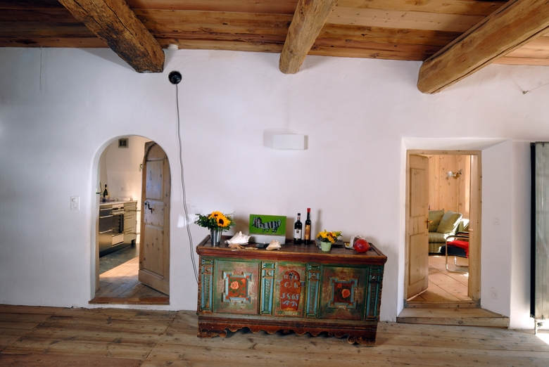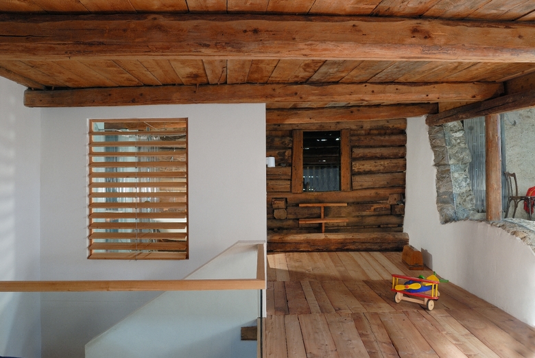 Umbau des Wohnteils eines Engadiner Bauernhauses. Konzentration auf die ursprüngliche Raum-Einteilung durch Entfernen der späteren Einbauten. Ein neuer Kern mit Bädern und Treppe, welcher sich über drei Geschosse erstreckt entstand im hinteren Gebäudeteil. Die neuen Materialien sind angepasst an die Bestehenden. Im Obergeschoss gibt es einen Öffnung mit Blick in den Heustall.
