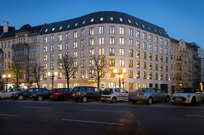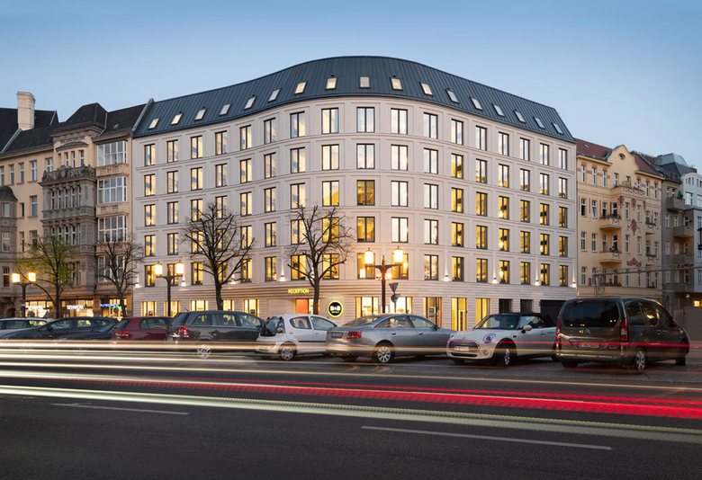 Das neue B&B Hotel mit einem Fassadenentwurf von Kleihues + Kleihues liegt eingebettet zwischen einem der schönsten Gründerzeitbauten in Charlottenburg, dem Wohn- und Geschäftshaus Kaiserdamm 118 von Hermann Heider aus dem Jahr 1908, und dem Gründerzeit-Wohnhaus Witzlebenstraße 4. Die offene Baulücke an dieser repräsentativen Ecke wurde mit dem 6-geschossigen Hotelneubau geschlossen.