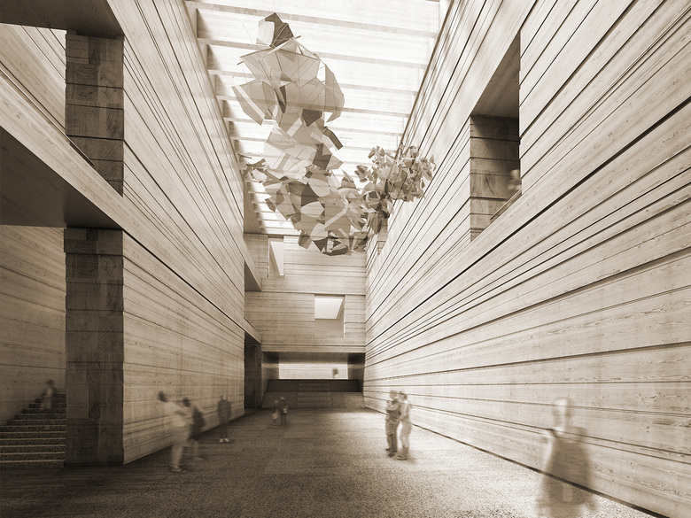 Obwohl der Museumsbau formal Ausdruck seiner herausragende Bedeutung ist, öffnet er sich mit einladender Geste und leitet die Besucher auf natürliche Weise in das Gebäude. Die Eingangshalle ist direkt mit dem obligatorischen Besucherservice verbunden und schließt unmittelbar an den zentralen Mehrzweckbereich an, der das Kernelement des Museums bildet. Der mehrgeschossige Raum bildet zusammen mit den umliegenden Galerieräumen einen komplexen Raumverbund, der auf dem Prinzip der Transparenz beruht und sich dem Besucher, über großmaßstäbliche Wandöffnungen erschließt. Das Entwurfskonzept für die Galerien folgt dem Prinzip, die Kunst maximal in den Vordergrund zu stellen.