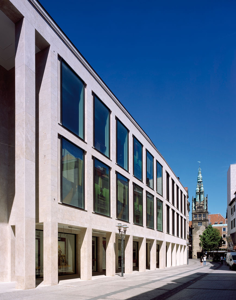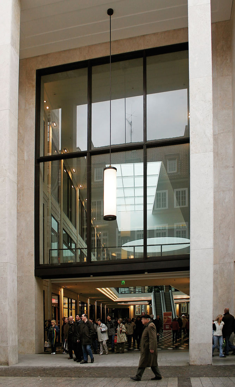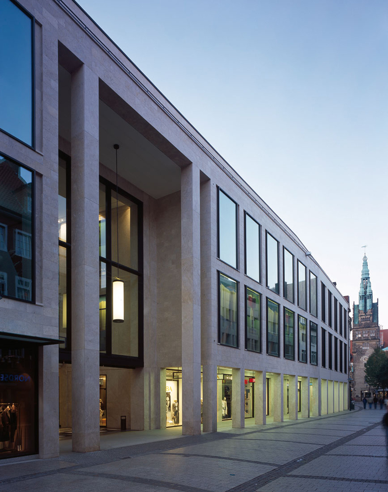 Der Entwurf setzt wesentliche städtebauliche Akzente durch das Vorrücken auf die historische Bauflucht. An der Rothenburg und der Ludgeristraße wird der spannungsvolle historische Stadtgrundriss durch die stadträumliche Verengung wieder hergestellt. Die Fortsetzung der den Prinzipalmarkt prägenden Kolonnaden mündet in der großzügigen 3-geschossigen öffentlichen Passage. Durch die Herausarbeitung der Nutzungsstrukturen gelingt es, die Fassade so zu gliedern, dass der Eindruck von Einzelhäusern entsteht. Hierdurch wird der Feingliedrigkeit der Altstadt Rechnung getragen und ein ansonsten kaufhaustypischer Baukörper vermieden. Besonderer Wert wurde auf die Attraktivität des Passagenraumes gelegt. Durch Dimension und Detail des vom Tageslicht durchfluteten Passagenraumes wird ein neuer attraktiver Stadtraum geschaffen. Immer neue Sichtbeziehungen und ein Kanon von architektonischen Blickpunkten schaffen einen spannungsvollen Raum. Die Passage ist bewusst nicht als Stadt in der Stadt geplant, sondern als Ergänzung und Stärkung der vorhandenen Handelstruktur, wobei die Münster Arkaden zusammen mit einigen Magnetmietern der Attraktivität der Münsteraner Innenstadt einen überregionalen Schub geben. Dabei gehören über die Hälfte der vermieteten kleinen und mittelgroßen Läden, die 70 Prozent der Fläche ausmachen, Inhabern aus Münster.