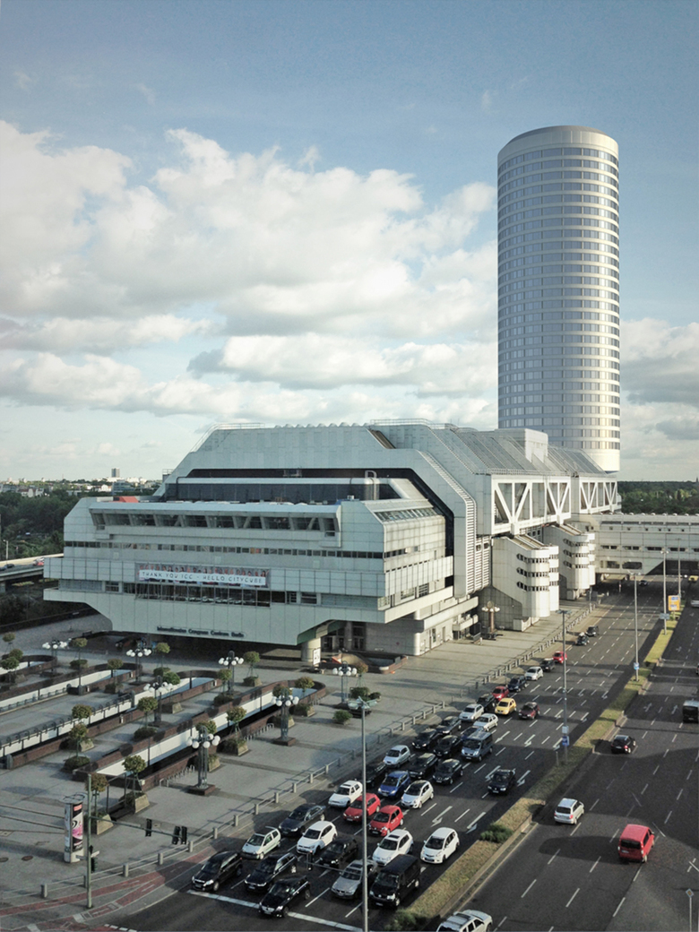 Der Entwurf von Jan Kleihues sieht den Erhalt des Gebäudeensembles sowie eine Erweiterung mit einem 106 Meter hohen Hotelturm vor. Mit dem Vorschlag würdigt er die Funktion des ICC als Wahrzeichen der City West und ist sich dessen bewusst, dass jeder Eingriff, der im Inneren oder an der äußeren Erscheinung etwas ändern würde, dem Gebäude auch gleichzeitig seine Seele entreißen würde. Der kreisrunde Turm soll aus der bestehenden Tiefgaragenspindel am Ende des Gebäudes erwachsen. Hierbei wird als „tragendes Element“ der alte Lüftungsschacht des ICCs genutzt. Gestaltung und Materialität orientieren sich an dem Bestandsgebäude: Der Turm ist mit einer silbrig schimmernden Fassade aus Aluminium verkleidet. Die runde Form findet sich in den außenliegenden, fast schwebend wirkenden, Treppenhäusern des ICC wieder. In der Ausführung ist der Turm jedoch filigraner. Das gleichmäßige, feine Raster, verleiht ihm ein dezentes Antlitz und unterstreicht die Wahrnehmung des Ensembles als Wahrzeichen der City West. Schon aus der Ferne ist der Turm mit einer Gesamthöhe von 137 Metern als Orientierungspunkt zu erkennen. Der Zugang zum Hotel erfolgt über den Dachgarten, der mit Aufzügen zu den Veranstaltungsbereichen des ICC und des Parkhauses verbunden ist. Der Dachgarten bietet sich hervorragend für Veranstaltungen oder als Frühstücksbereich an: Speisen und feiern mit Blick auf das Treiben der City West. Insgesamt erstrecken sich 32.000 qm Bruttogeschossfläche (BGF) über 29 Etagen mit knapp 520 Hotelzimmern.