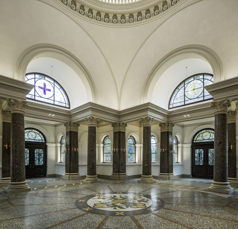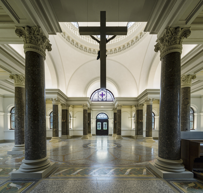 The Consecration Hall built in 1899 in a Neo-Renaissance style stands majestically in the “Hauptfriedhof” in Freiburg. Build in the shape of a Greek cross the building is covered by a dome rising to height of 33 meters. The several damages sustained during the Second World War along with the makeshift repairs in the post-war years created a desperate need for renovation along with a complete overhaul of interior lighting. The lighting concept aims at enhancing the strong and distinct architectural characteristics of the building with its imposing dome while supporting its function as a place for Liturgy and concerts.