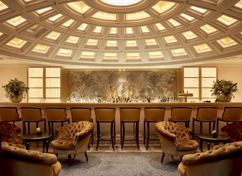 The aim of the lighting concept was to support a clear functional hierarchy for the lobby, the adjacent reception, the bar and the breakfast areas, thus optically harmonizing these spaces to create a clear overall spatial impact. The uniting special feature, golden casseted ceiling was brought with lighting to attention with integrated dynamic white LED fixtures.