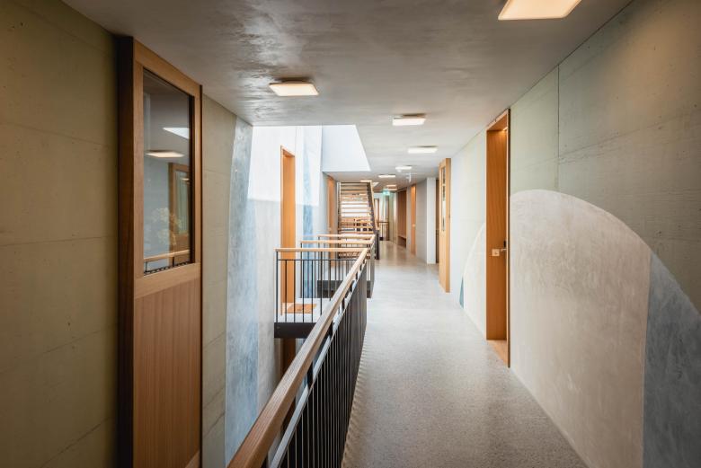 Eingebunden in das städtebauliche Gefüge der neuen Bebauung wird der Park auf dem heutigen Gemeindehausplatz zum Ort der Begegnung und zur eigentlichen Bühne für das öffentliche Leben. Der Platz soll multifunktional nutzbar sein und auf zukünftige unterschiedliche Anforderungen gelassen reagieren können.