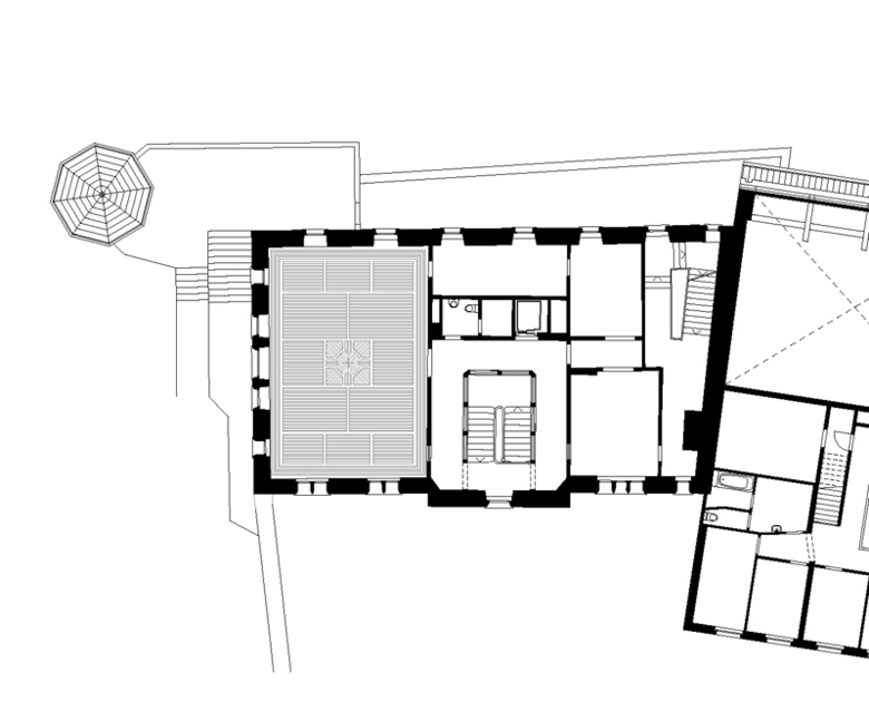 The North Wing is one of the oldest parts of Laufen Castle and an important component of the complex since it has been the subject of countless historical photos and tourist snapshots. On the two main floors, a „Historama“ now invites visitors to learn about the Rhine Falls. The entire building wing has been fully renovated. The facade, the Bleulersaal and the main staircase were restored in close collaboration with the society for historical preservation. A second staircase allows a continuous circulation through the exhibition as well as a secure escape route for the building. Adjacent to the main staircase, a narrow zone with an elevator, toilet facilities and technical rooms has been intregrated into the structure.