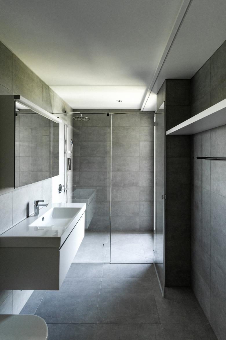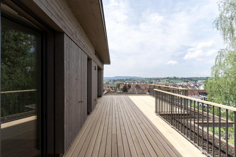 Die öffentlichen und privaten Ansprüche an eine Verdichtung der bestehenden Bauzonen bedingen eine kompakte und knappe Bemessung aller Räume. Dieser relativen Enge entgegen wirkt ein grosszügiges Belichtungskonzept mit häufig zweiseitig besonnten Räumen und mit Nasszellen, die direkt über der Fassade natürlich belichtet werden.