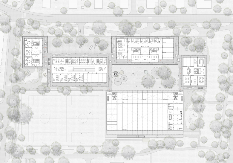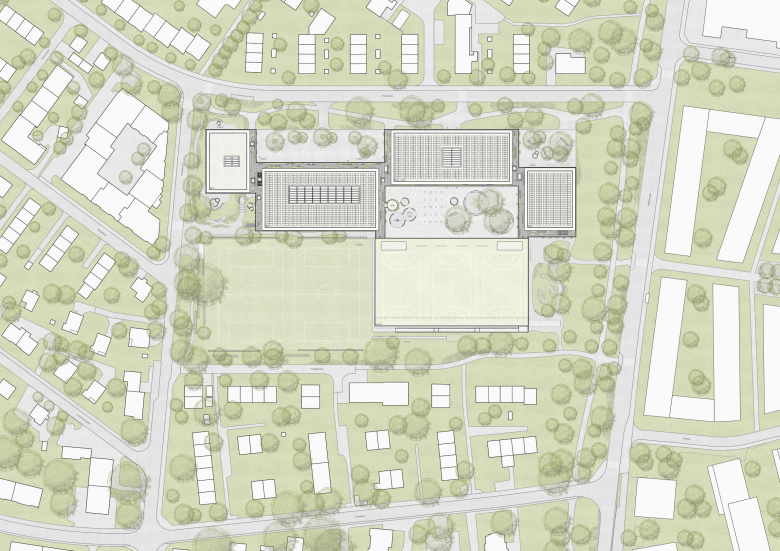 Schnitt Turnhalle - Pausenplatz - Primarschule