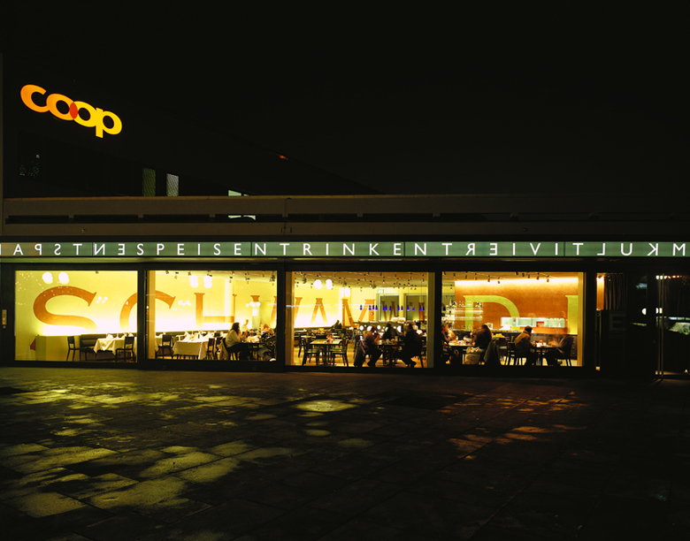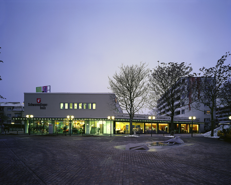 Renovation and Extension of the Schwamendingen district building with offices for local city and school administration, shops, a supermarket and a restaurant.