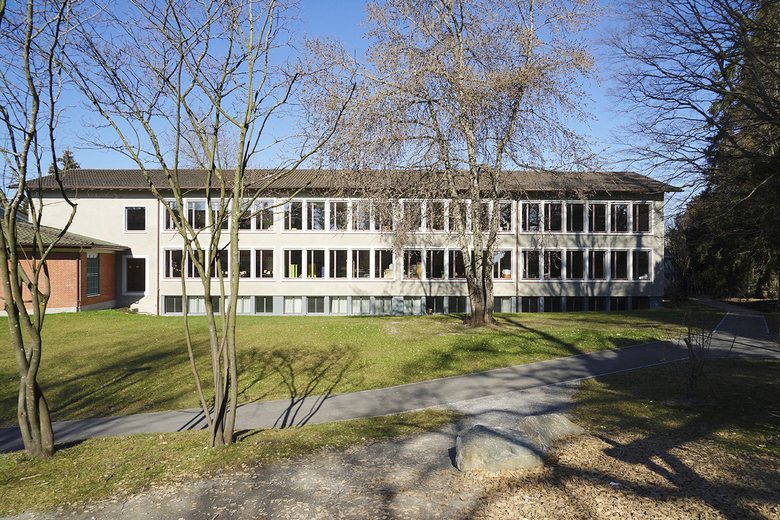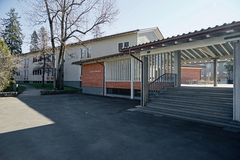 Die Schulanlage Brunnenmoos in Kilchberg ist ein Baudenkmal der Fünfziger Jahre und Zeitzeuge des damals verbreiteten späten „Landi“ - Stils.