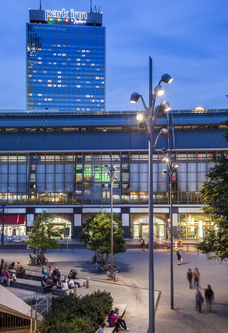 The urban space around the television tower at Alexanderplatz is one of the most prominent and frequented locations in Berlin and has been reinterpreted and redesigned by the landscape architects Levin Monsigny. The careful transformation of the urban landscape, all while considering its existing design, central location, and the GDR history, has produced a modern, functional plaza with high urban significance. The lighting concept supports this high intensity usage by heterogeneous user groups, while supporting the diverse gathering areas with different lighting atmospheres. The lighting is carefully attuned to the landscape concept and offers a high quality visitor experience. In addition, this urban plaza has received a new, friendly identity, which is inviting both as a lingering spot and for lively gatherings.