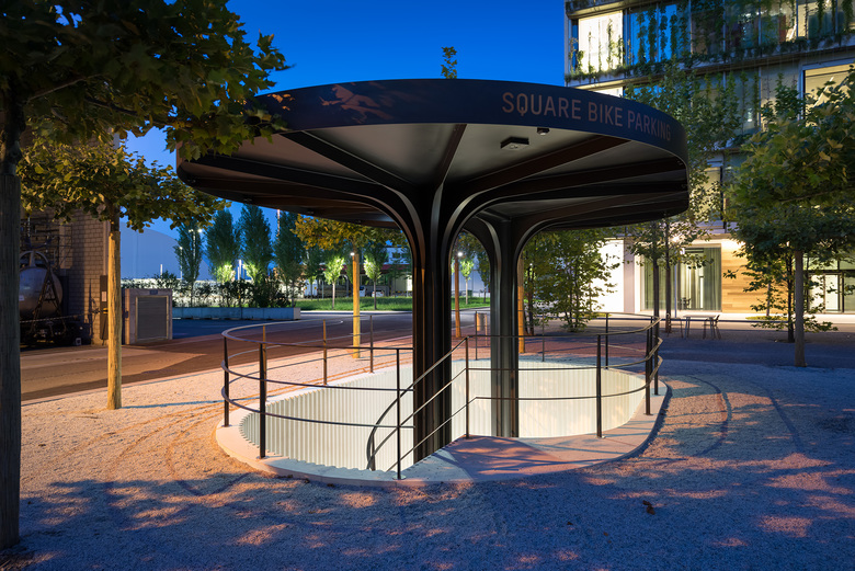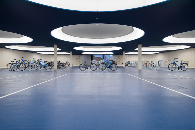 More and more people are switching from cars to bikes for their daily commute, this is also true in the Swiss city of Basel. Exclusively for bicycles, the pharmaceutical group Novartis built an underground parking garage for its staff members on the campus. Completed in the summer of 2017, a generous subterranean space for more than 800 bicycles was created which forms an impressive architectural site.