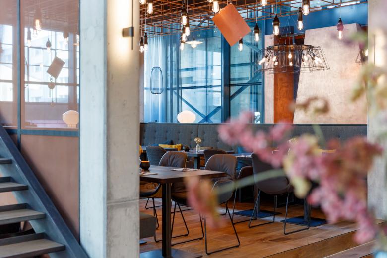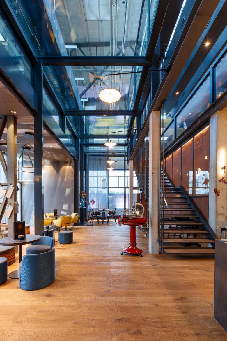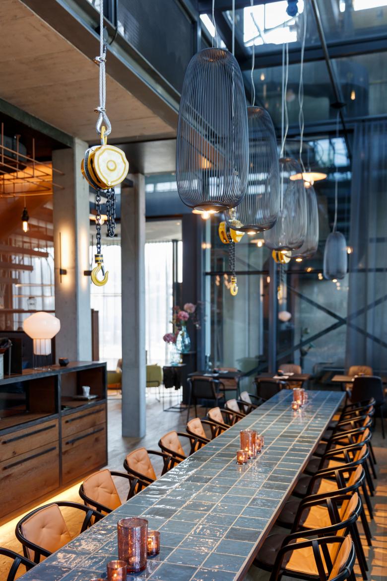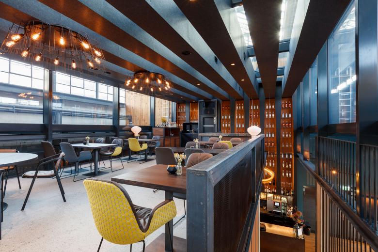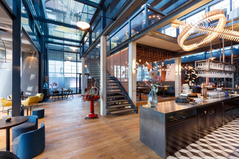 Innovative Umnutzung einer alten Industrie-Halle in ein modernes Restaurant sowie in Ateliers und ein Eventlokal.