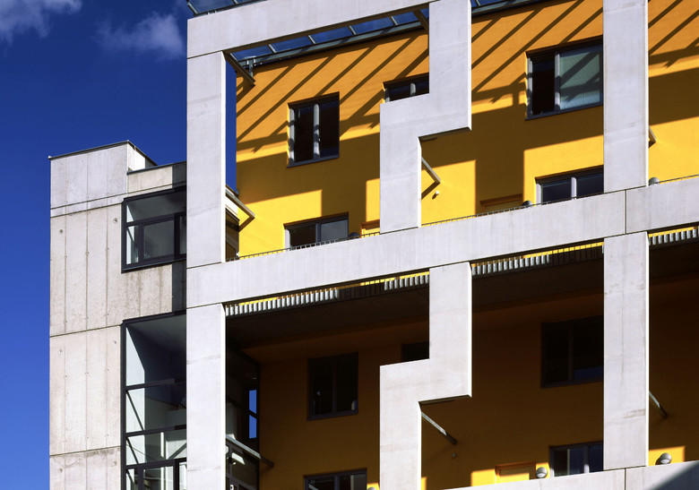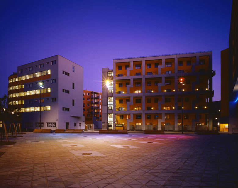 A small residential block containing 33 units is erected within the framework of the urban development of "Kabelwerk", the most exciting current urban development in Vienna. The theme of the housing is "car-free", the typology used is the terrace house with a large void between two slabs that not only contains the circulation but also a bicycle storage space and communication space