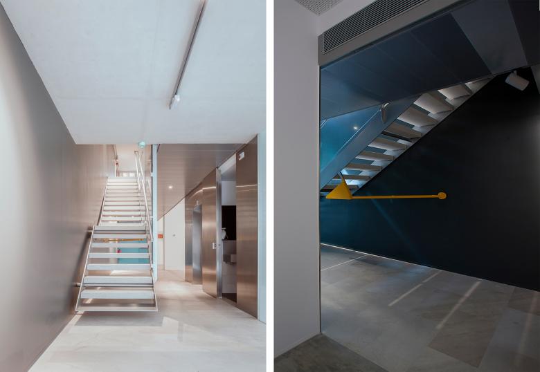 Some singular elements appear: a staircase that takes flight, another that recreates the chromatic world of the artist in question...