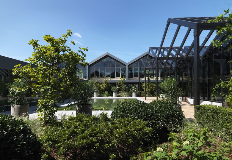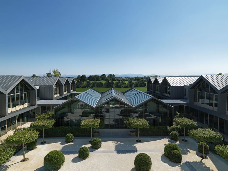 A village, a glasshouse, a factory. Melting traditional rural shapes and innovative volumes around a greenhouse. Functionality and welfare of employees.