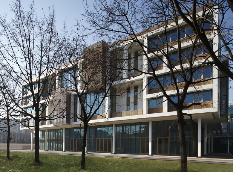 Six “casa-bottega” buildings around a garden. A low impact architecture aimed at achieving maximum energy efficiency.