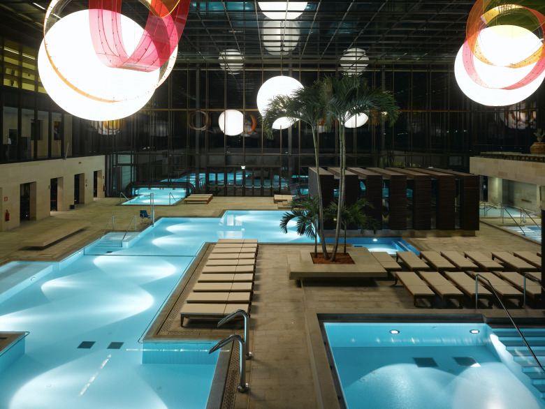 A transparent design for thermal baths surrounded by mountain landscape. Natural, untreated materials concealing high-technology heating system.