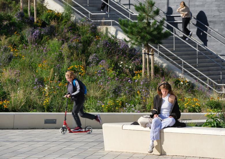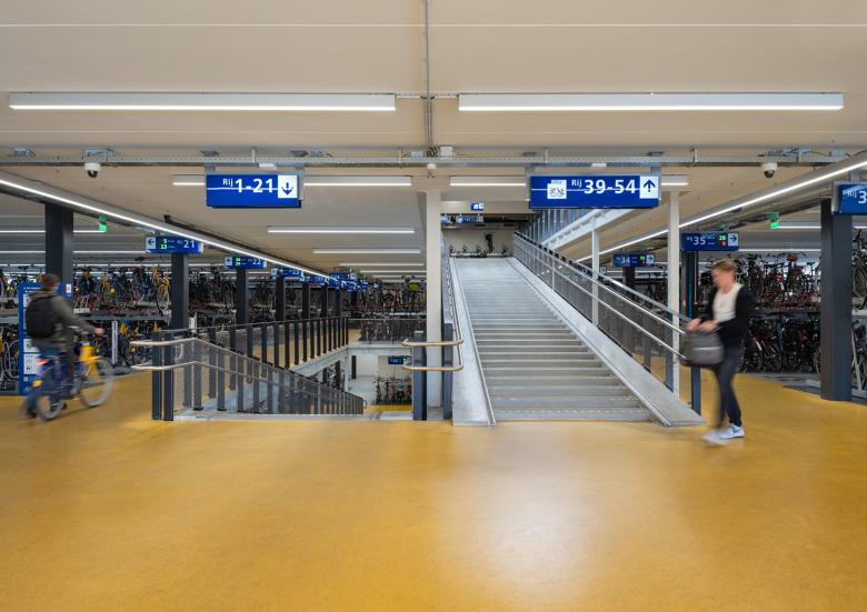 The station has been designed for the safety and comfort of travellers. Retail units are located at the south entrance of the pedestrian tunnel that gives access to the platforms, and from the platforms themselves, all transport modes can be seen: the station square, bus square, drop-off zone, taxi, and bicycle parking. A large indoor bicycle parking facility has been integrated into the design and can accommodate up to 5,500 bicycles, together with a pedestrian and cycling bridge to the east of the station – which provides an unrivalled view of the Veluwe.