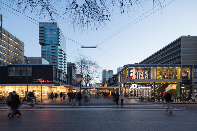 In 2014, Mei architects and planners won the competition for the transformation of the facades and panels of the Lijnbaan and Korte Lijnbaan. For the last years there have been many changes in this section of the centre of Rotterdam. For instance, an area regulation pact, ‘Lijnbaanregeerakkoord’, was signed by the store owners, and Mei has restored many storefronts. By the application of natural materials, ‘warm’ concrete, and lots of glass, Mei has proved able to bring back the original character and high-standard post-war architecture of these stores.