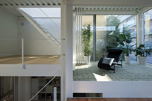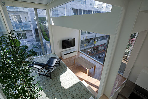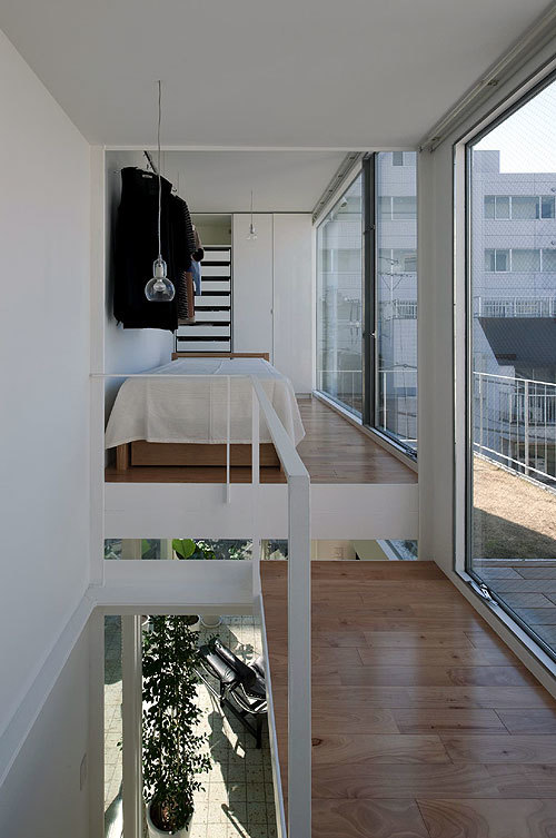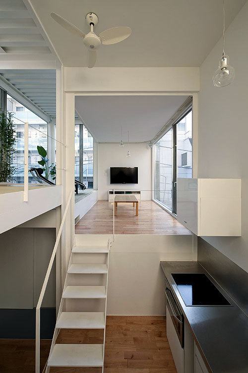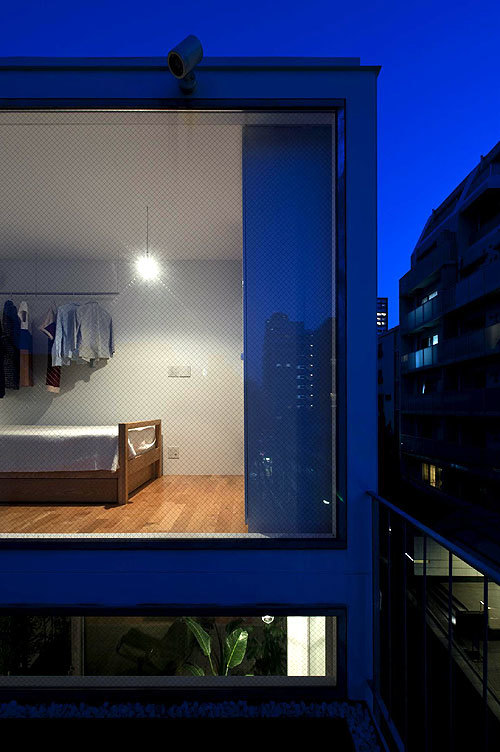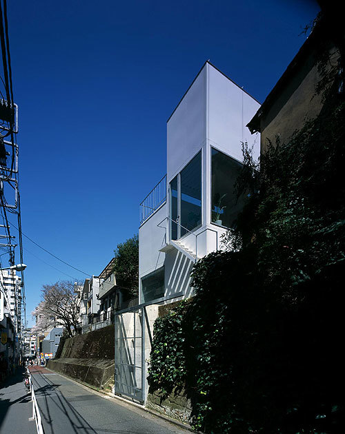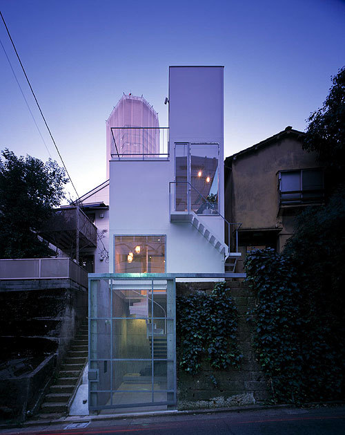 This tiny house in inner-city Tokyo sits just three minutes from the bustling Yotsuya-Sanchome train station. Constructed from 150mm x 150mm x 12mm L-shaped steel pieces produced in a factory, the rigid frame was assembled on site using a crane.
