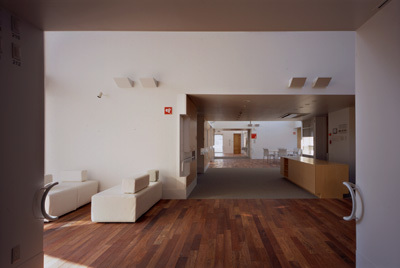 The standard room height on the 1st floor (where examination rooms are) was set to 3.5m, and within the larger space small rooms with a height of 2.4m were created using reinforced concrete walls. In contrast, the standard ceiling height on the 2nd floor (inpatient ward) was 2.1m, with 5.2m-high rooms set into this space. Thus, we proceeded along two parallel but opposite design principles at the same time: enclosed rooms in an open space on the first floor, and liberated areas within an enclosed space on the second floor.